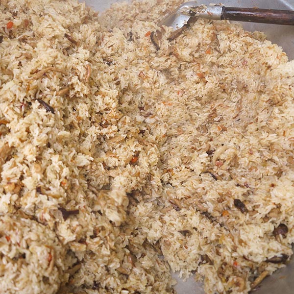 加熱請將料理包完全解凍,放入容器中,以電鍋(蒸籠)蒸煮,覆熱之後即可食用。★蒸煮一半時間,可將油飯拿出翻拌,幫助受熱均勻。