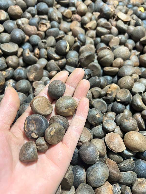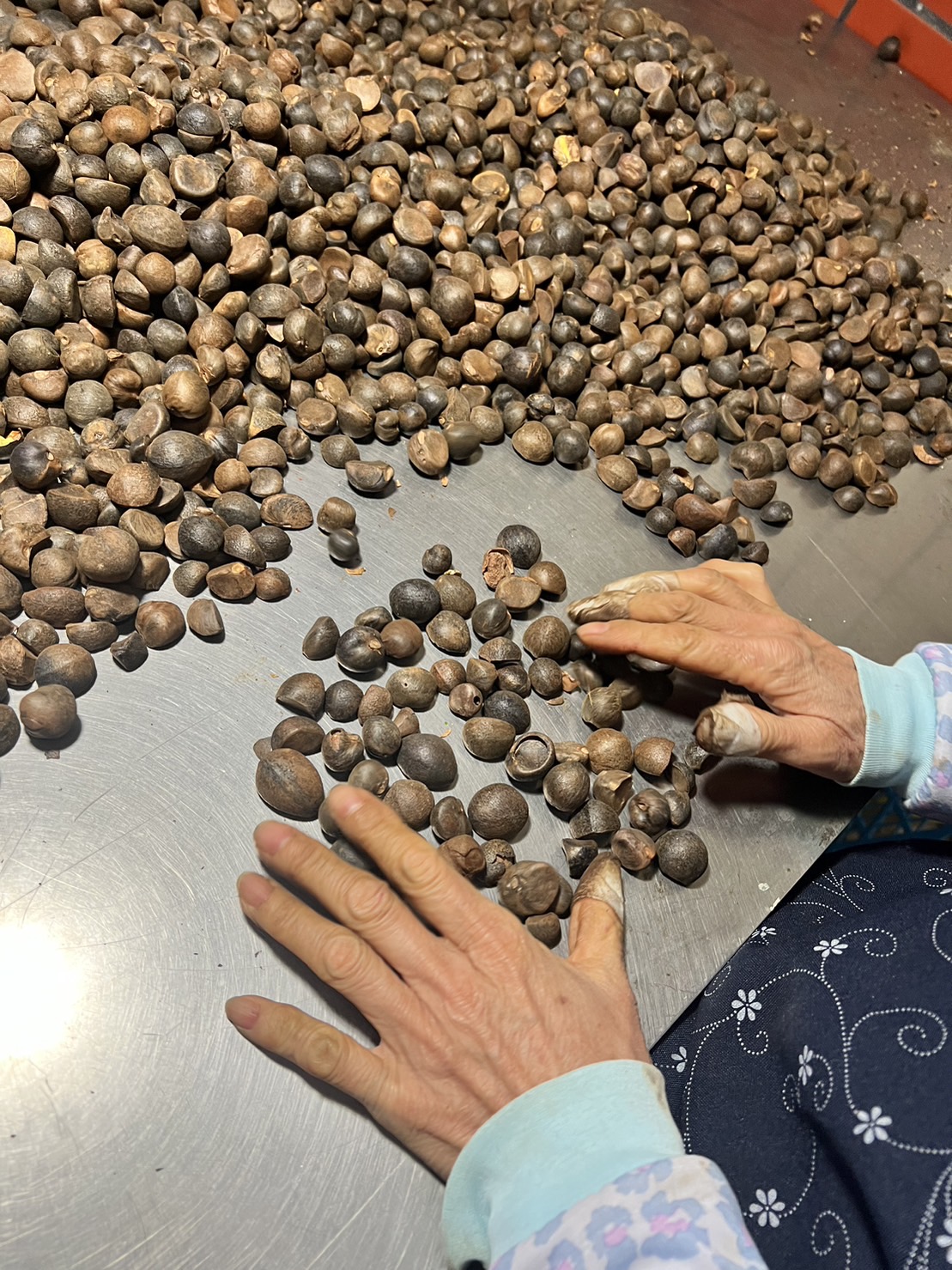 人工揀選剃除瑕疵茶籽,選用完好茶籽榨油